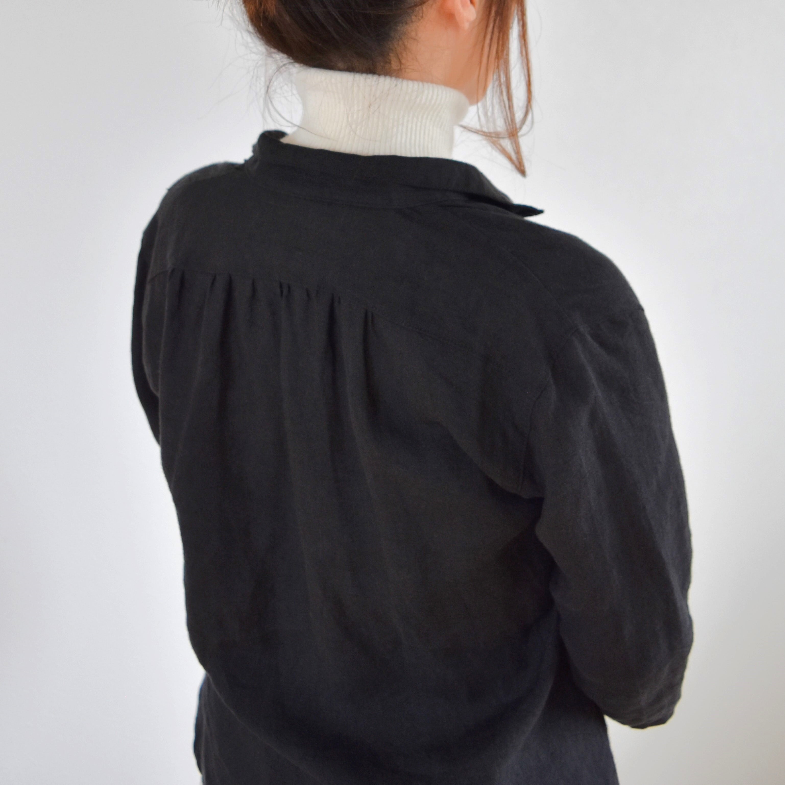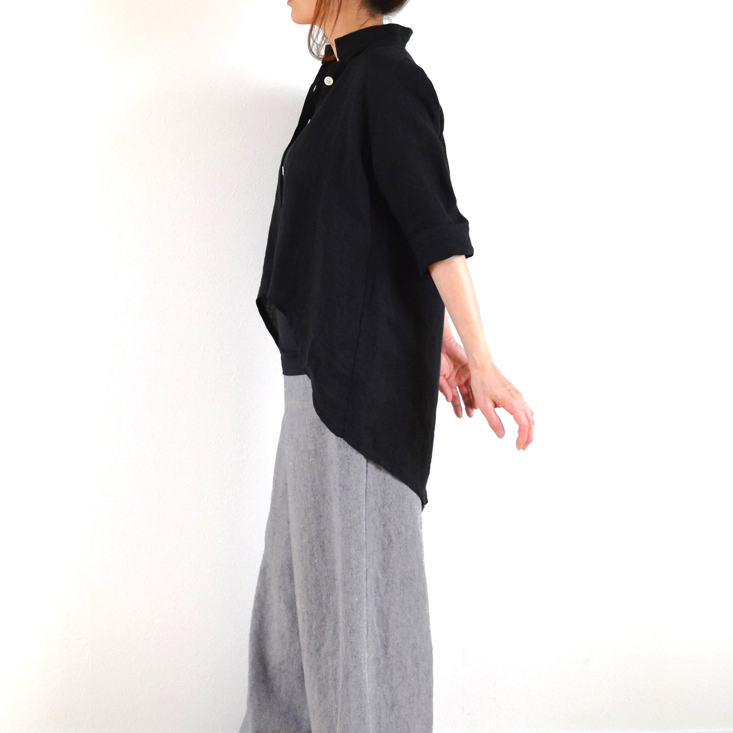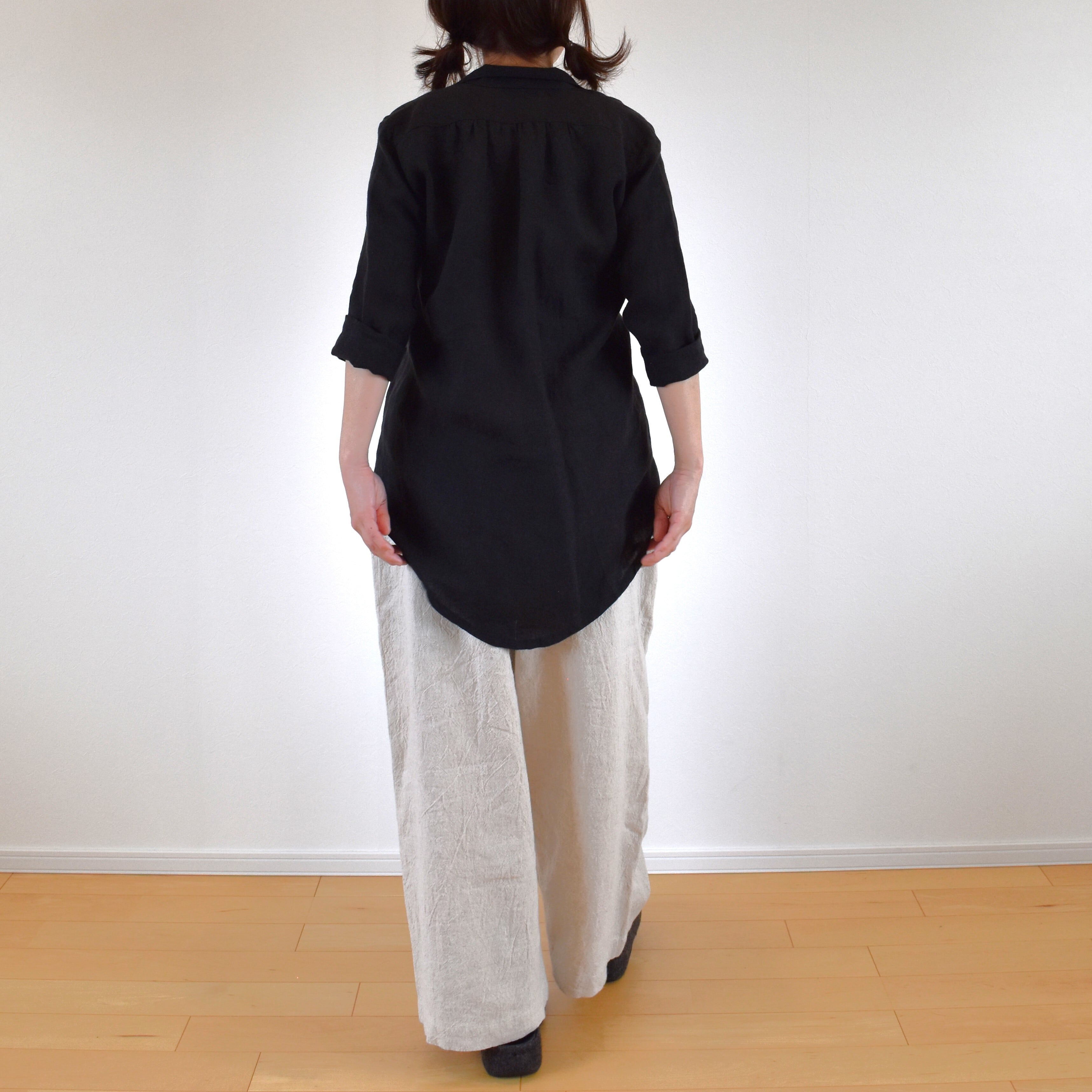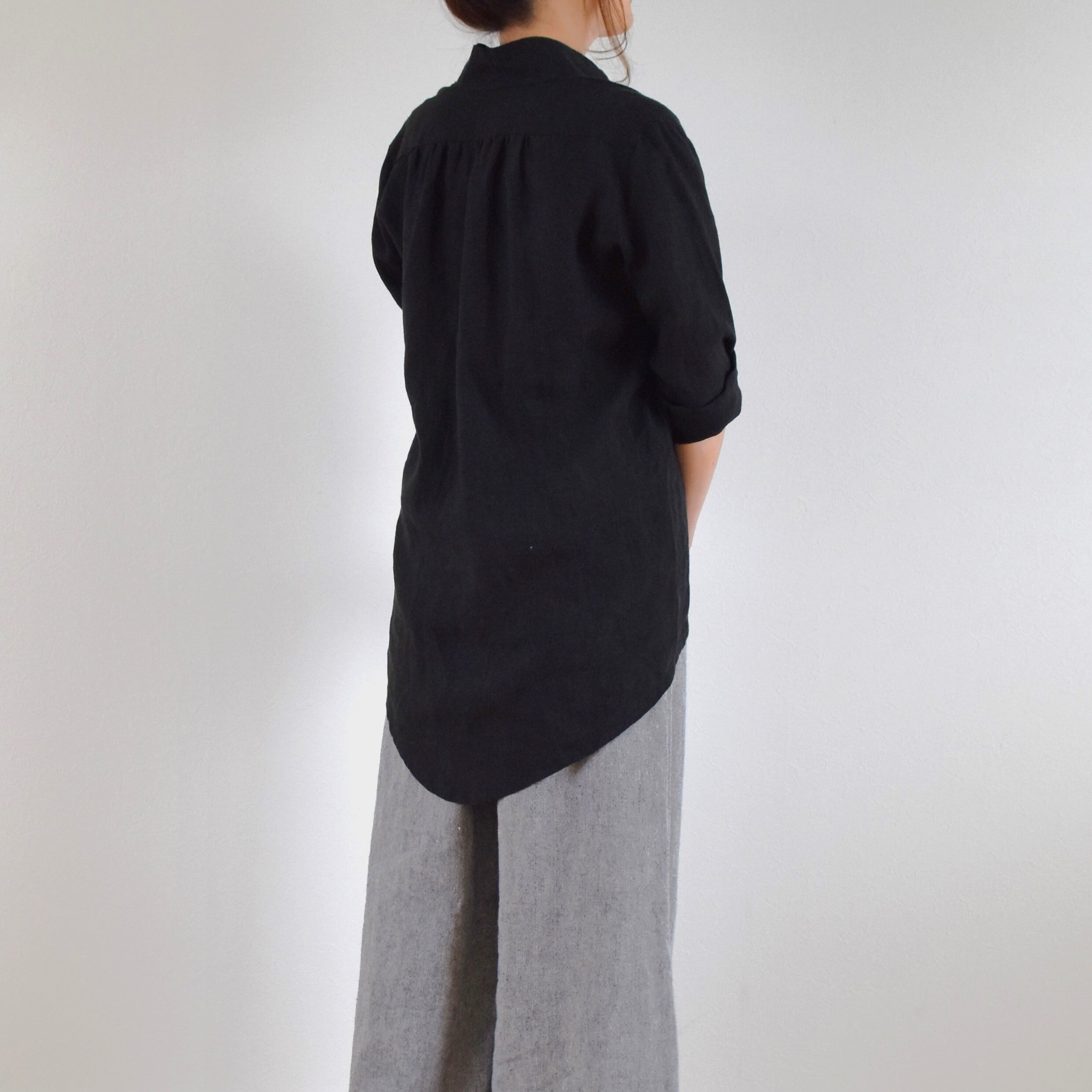 やわらかリネン100% 前後差丈 シャツブラウス/ブラック
