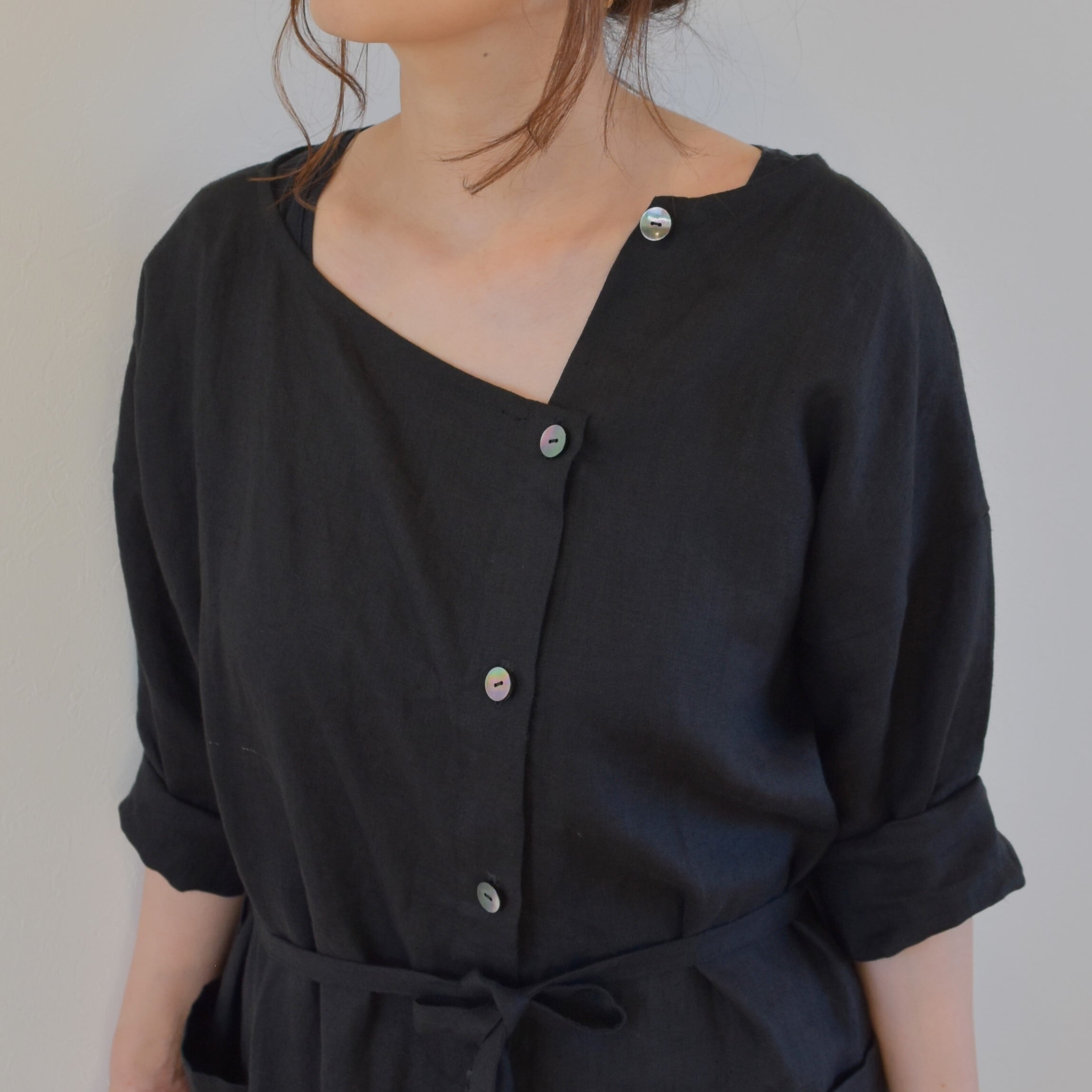 ・素材 リネン100% 貝ボタン(黒蝶貝) 9個