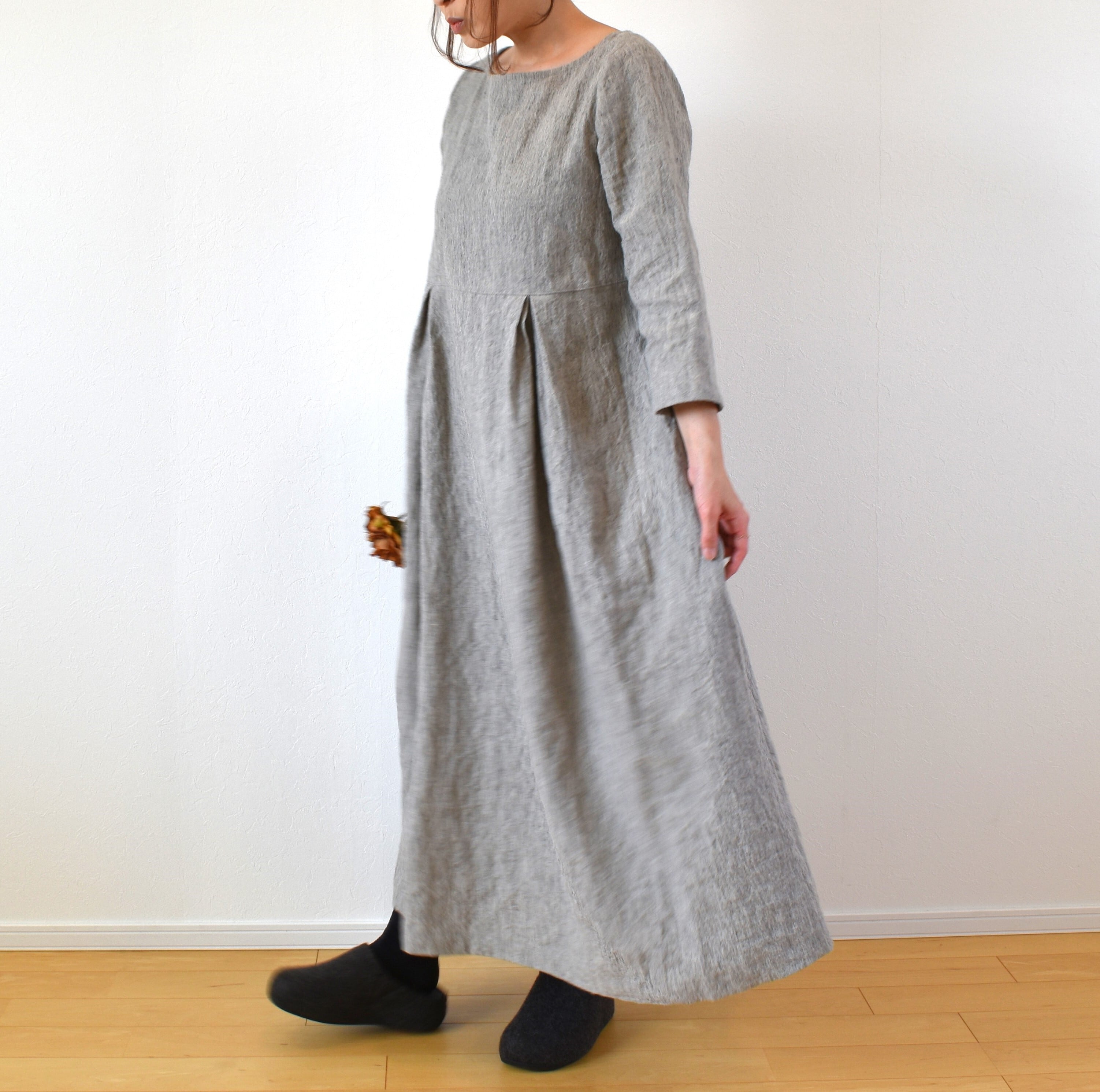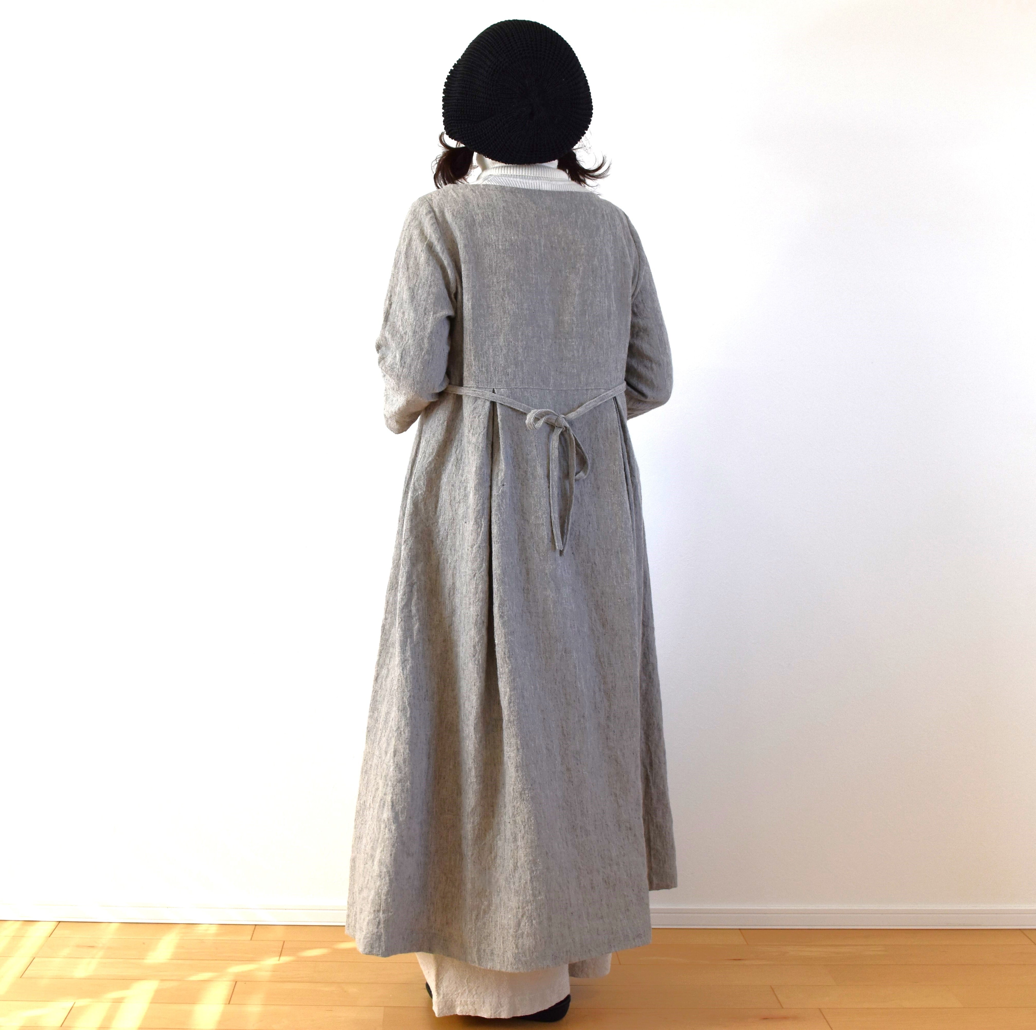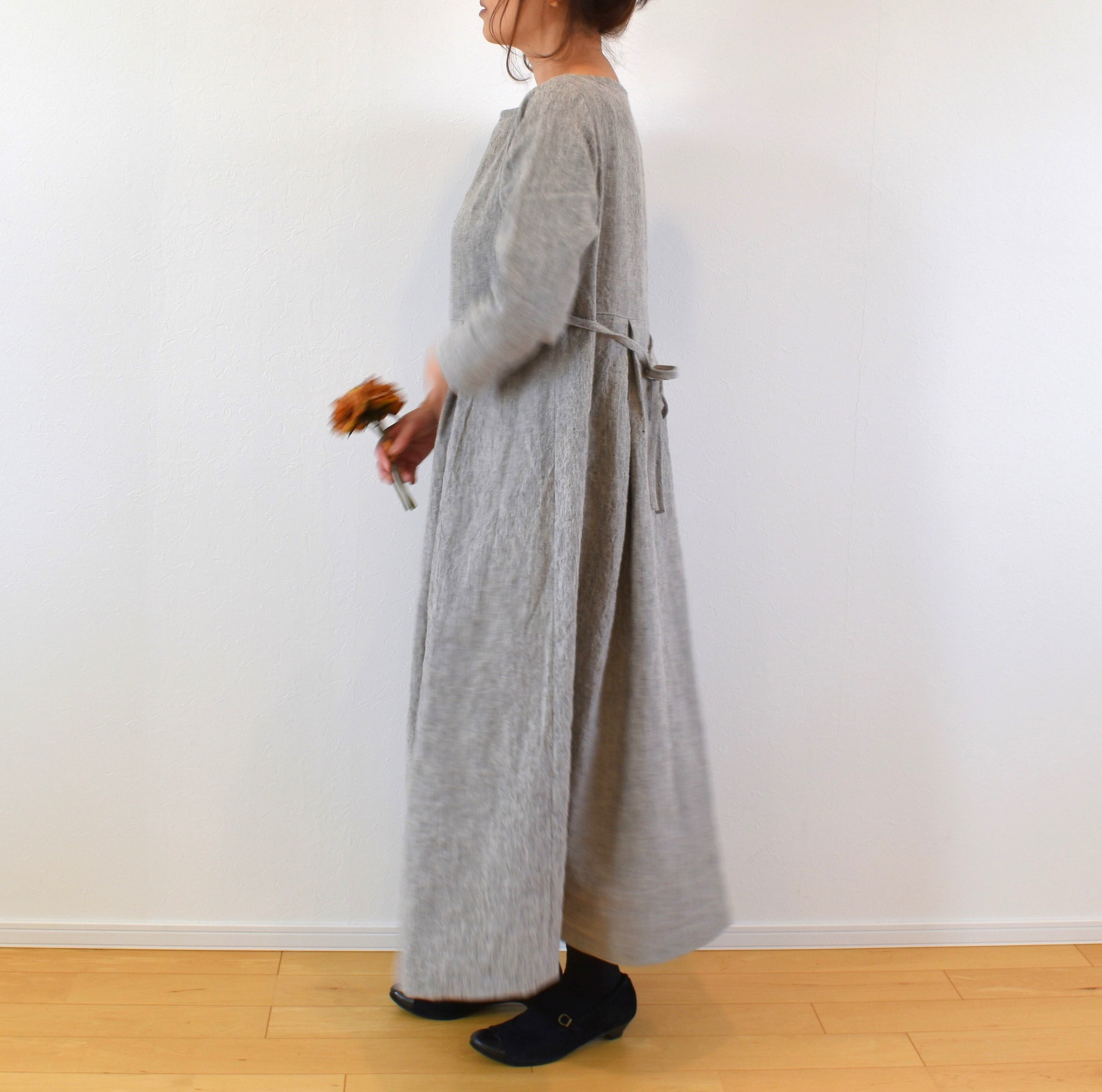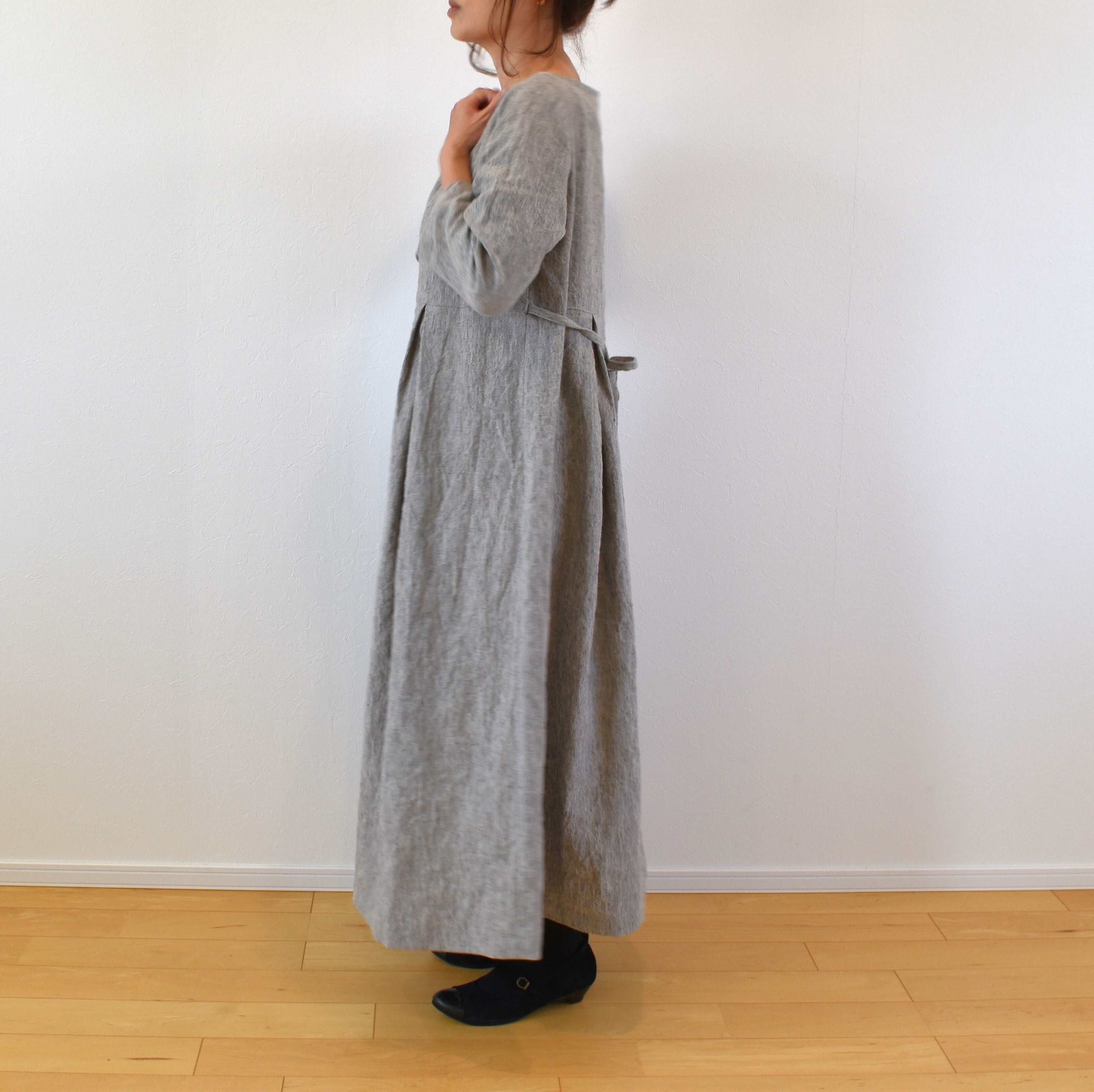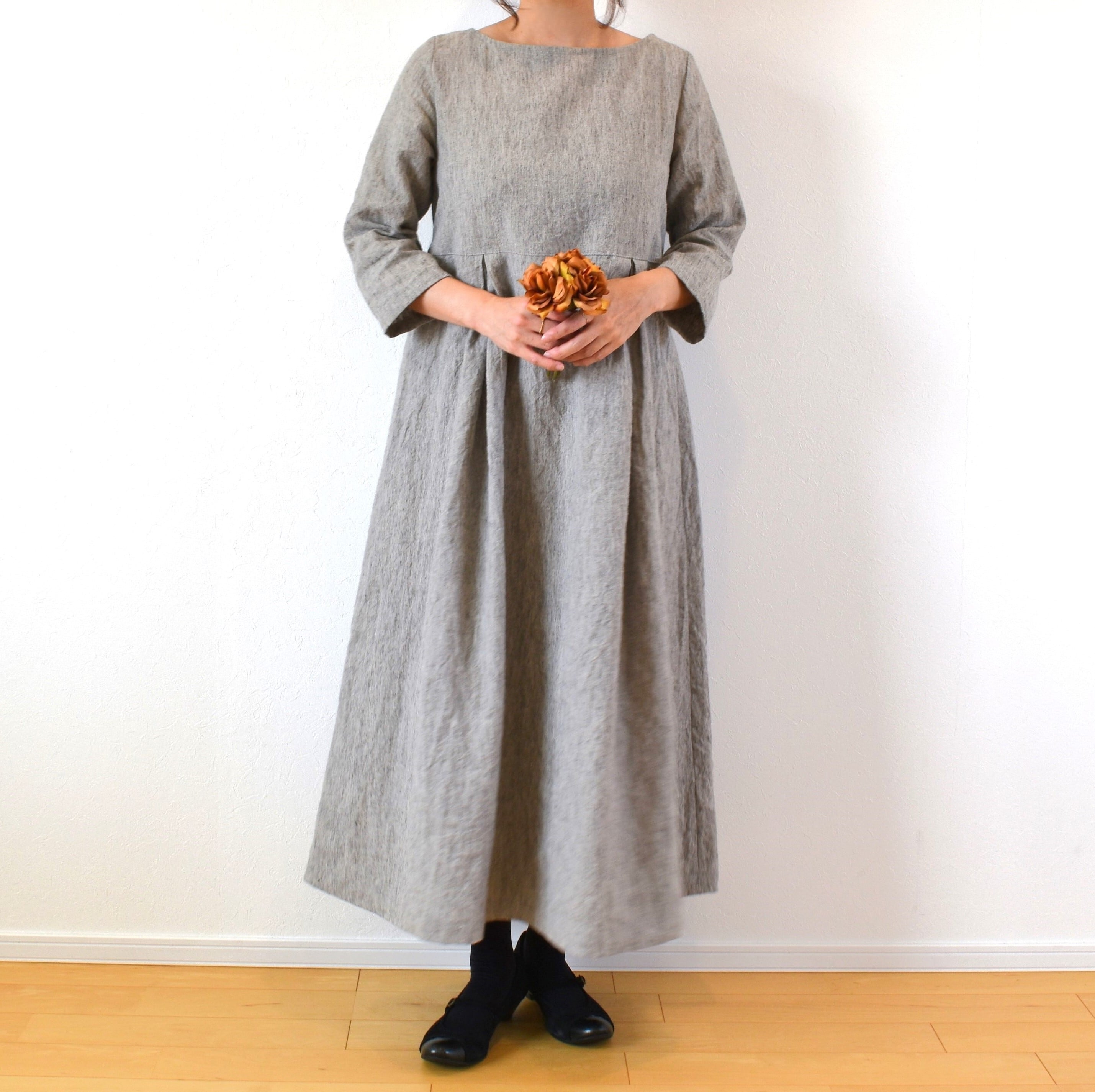 霜降りラミーリネン100% シンプル クラシックワンピース/ライトグレー