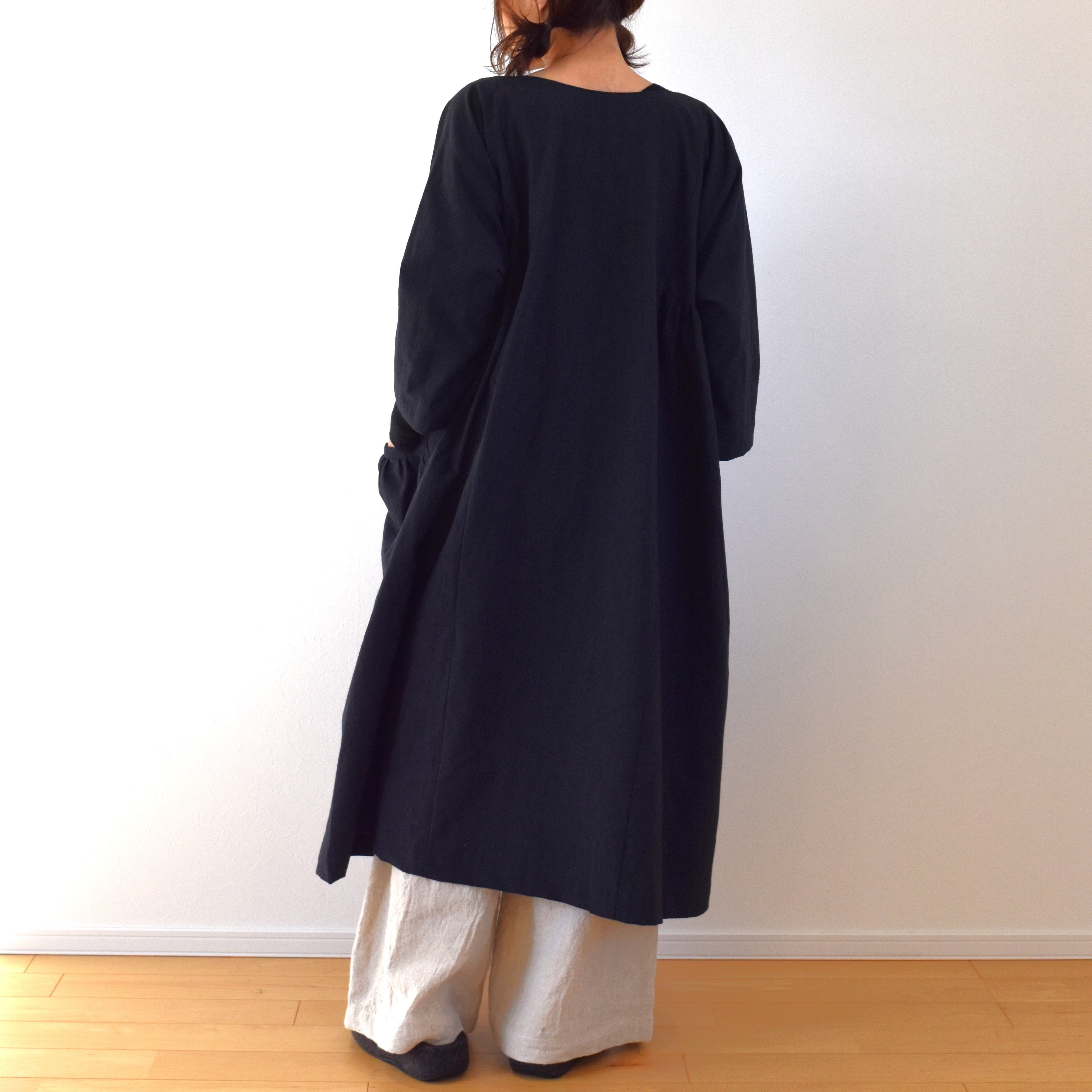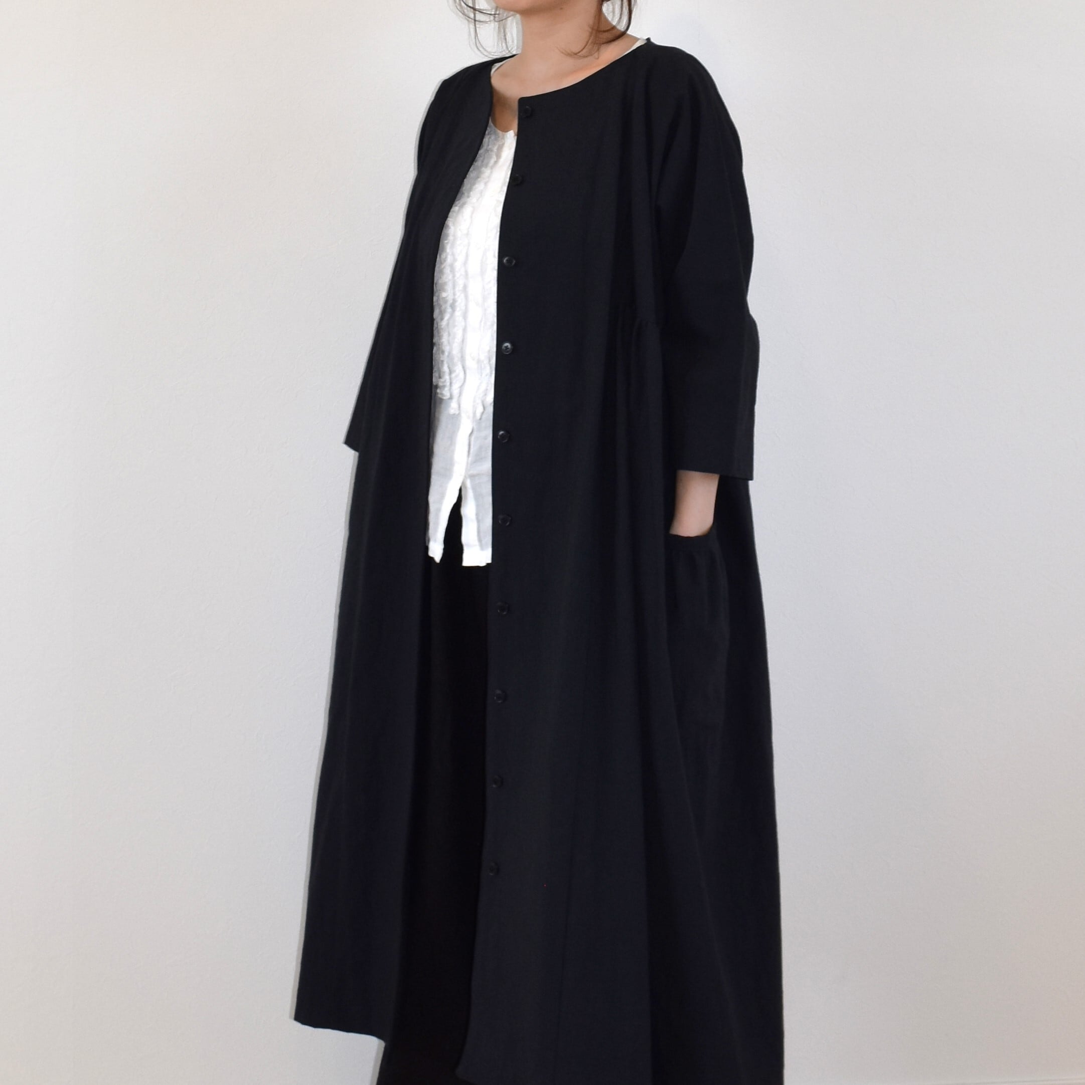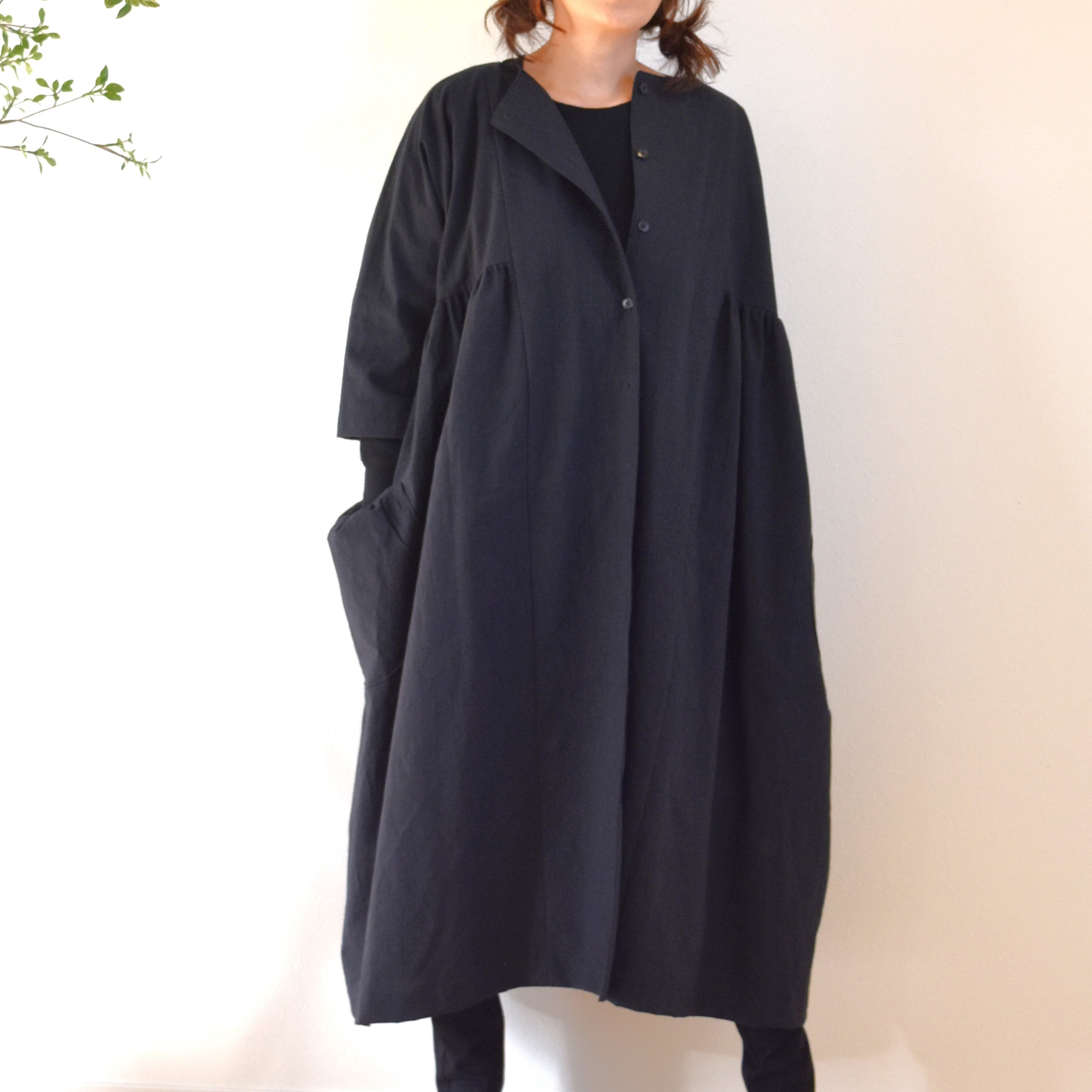 コットンリネン バルーンコート/ブラック