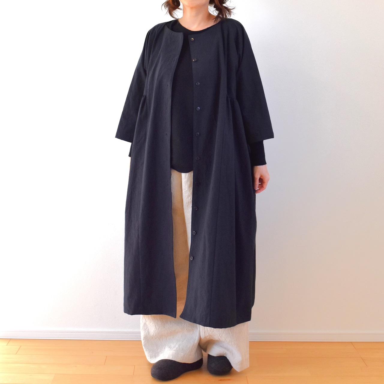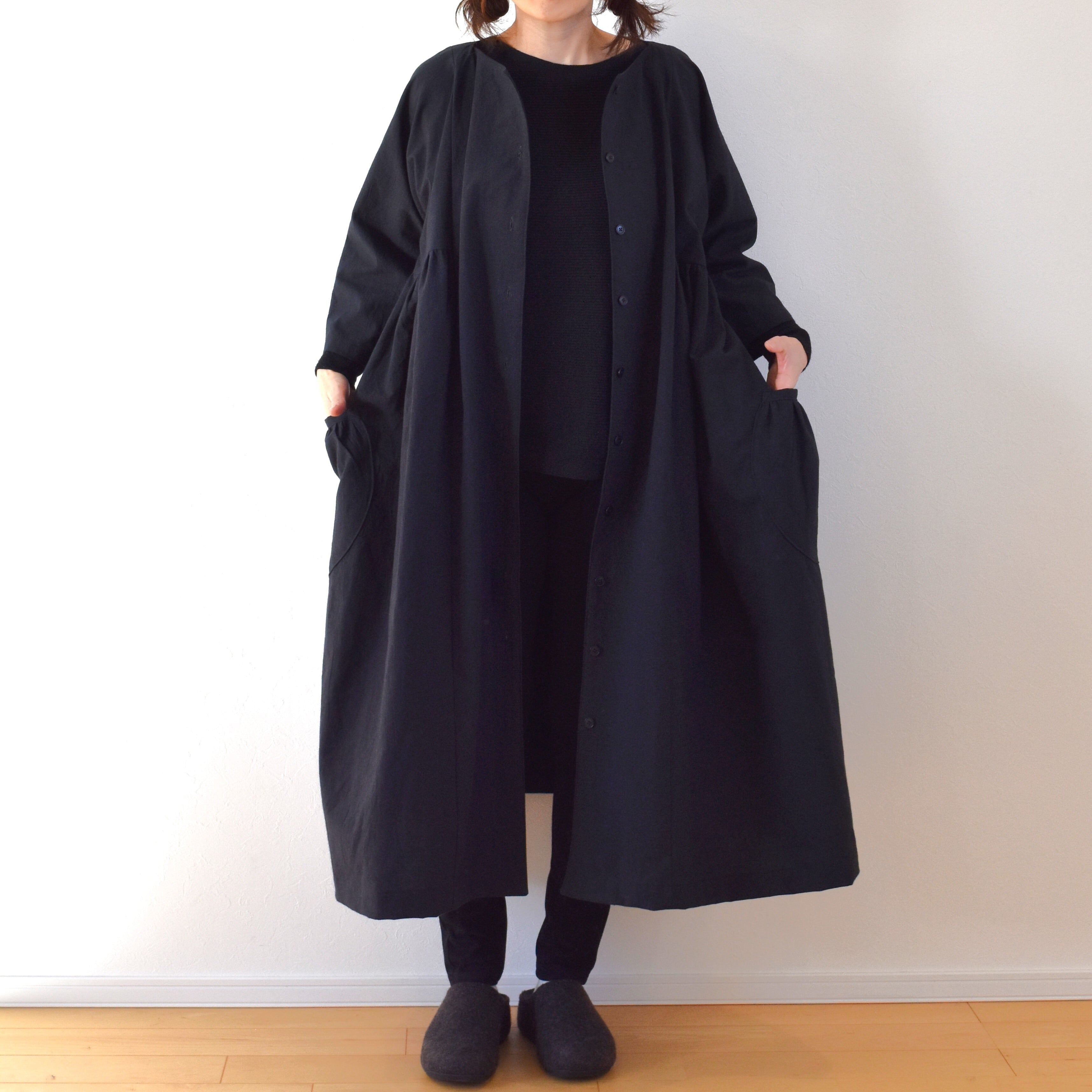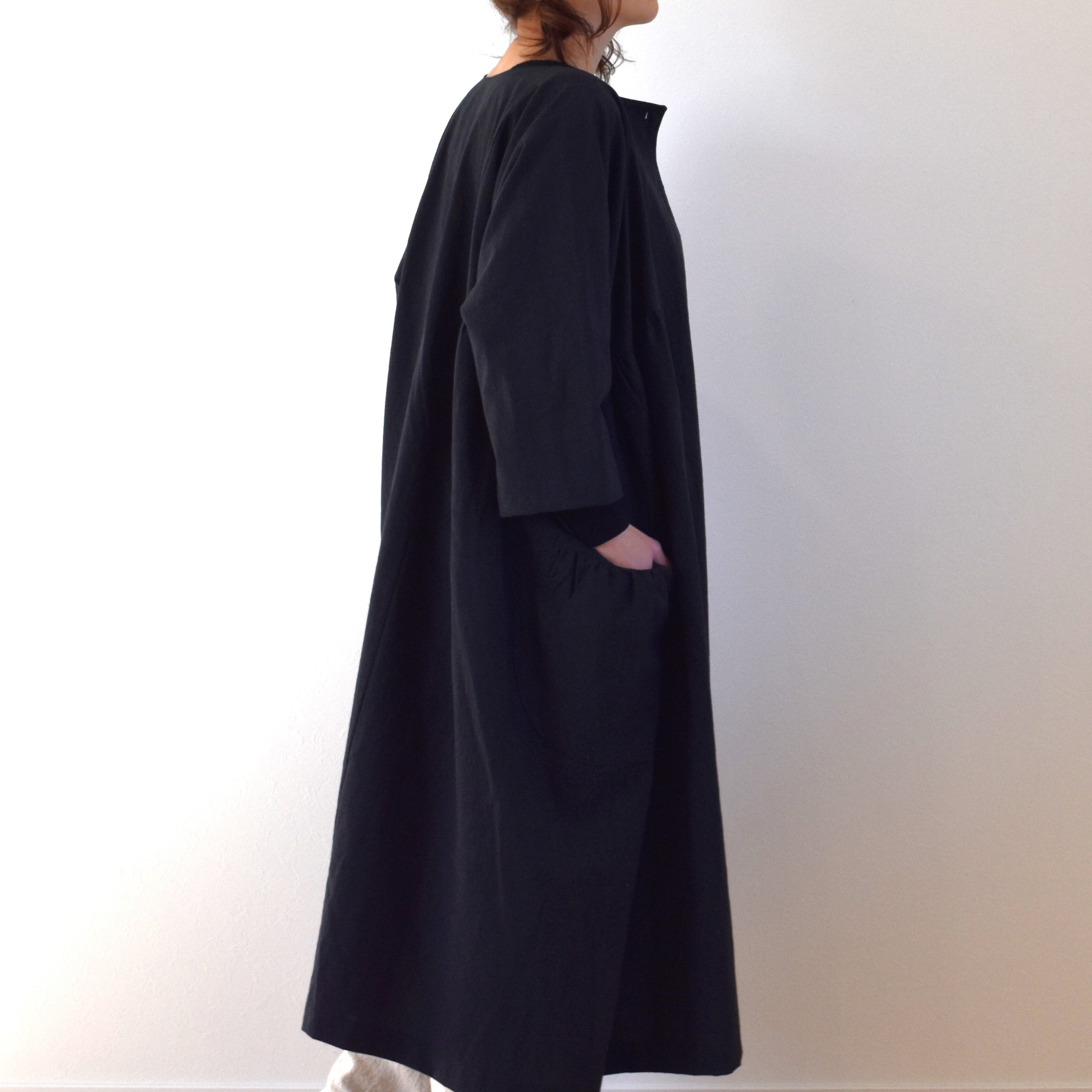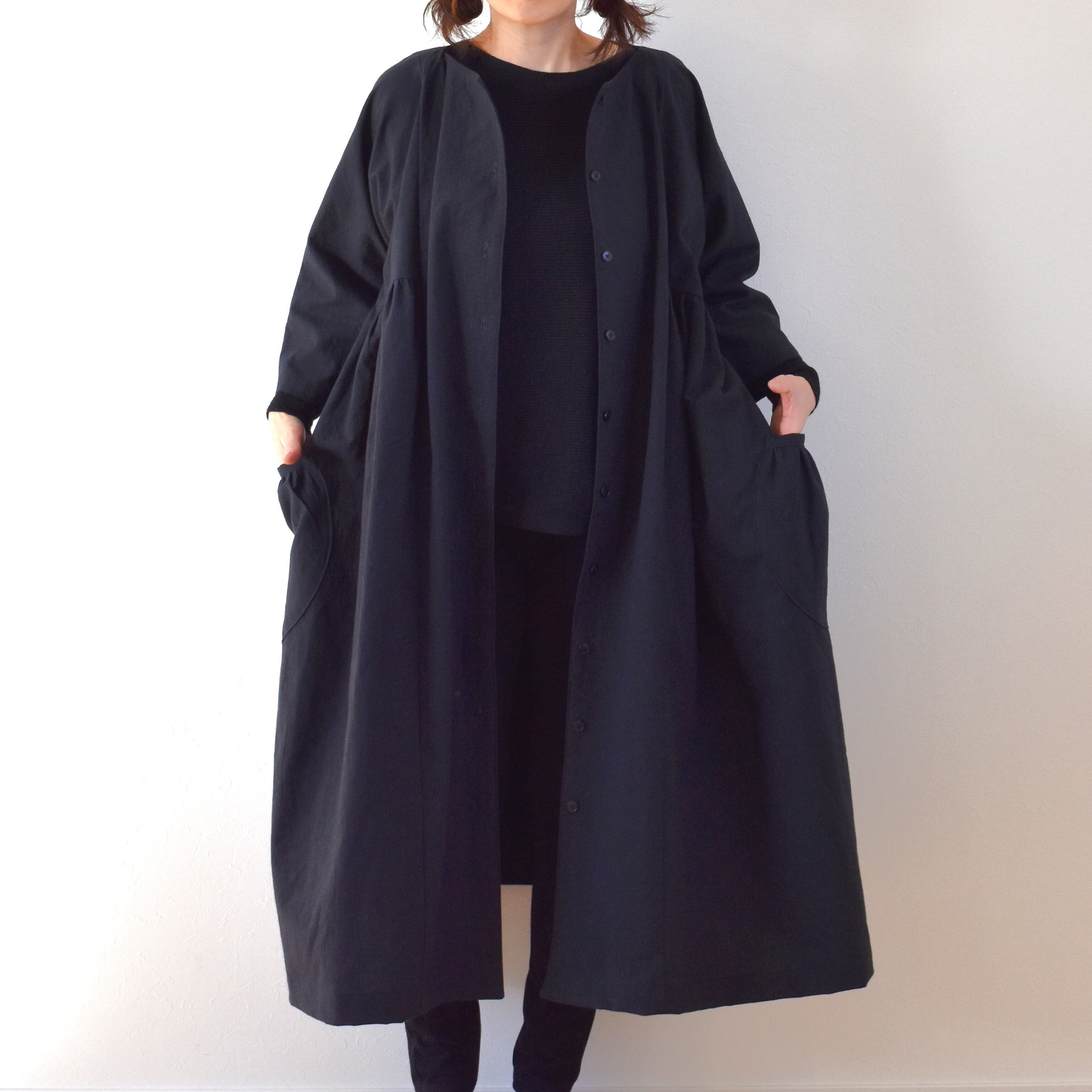 コットンリネン バルーンコート/ブラック